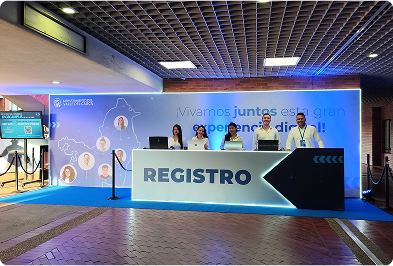Acompañamiento y despliegue 360° en eventos masivos organizados por entidades gubernamentales para ofrecer información sobre productos digitales que benefician a la comunidad.